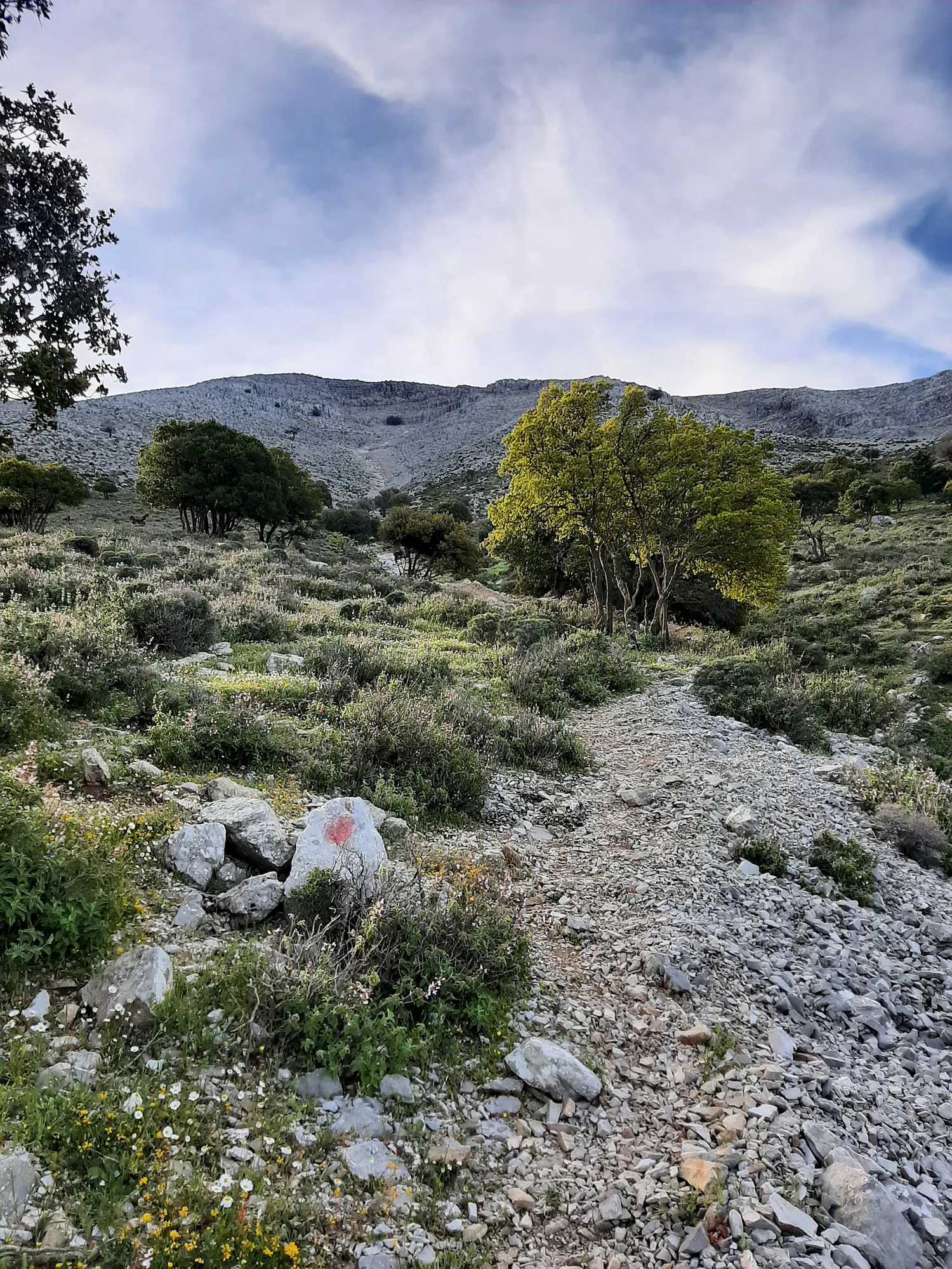 Difficult to find the trail on descent yet the navigation is generally quite easy even if the path is lost as the path goes around main gully that stretches down to the foot of the mountain pointing at Embonas. Could be tricky with fog around but that probably never happens on Rhodes. There are some cairns but even too many and not pointing at the trail directly.