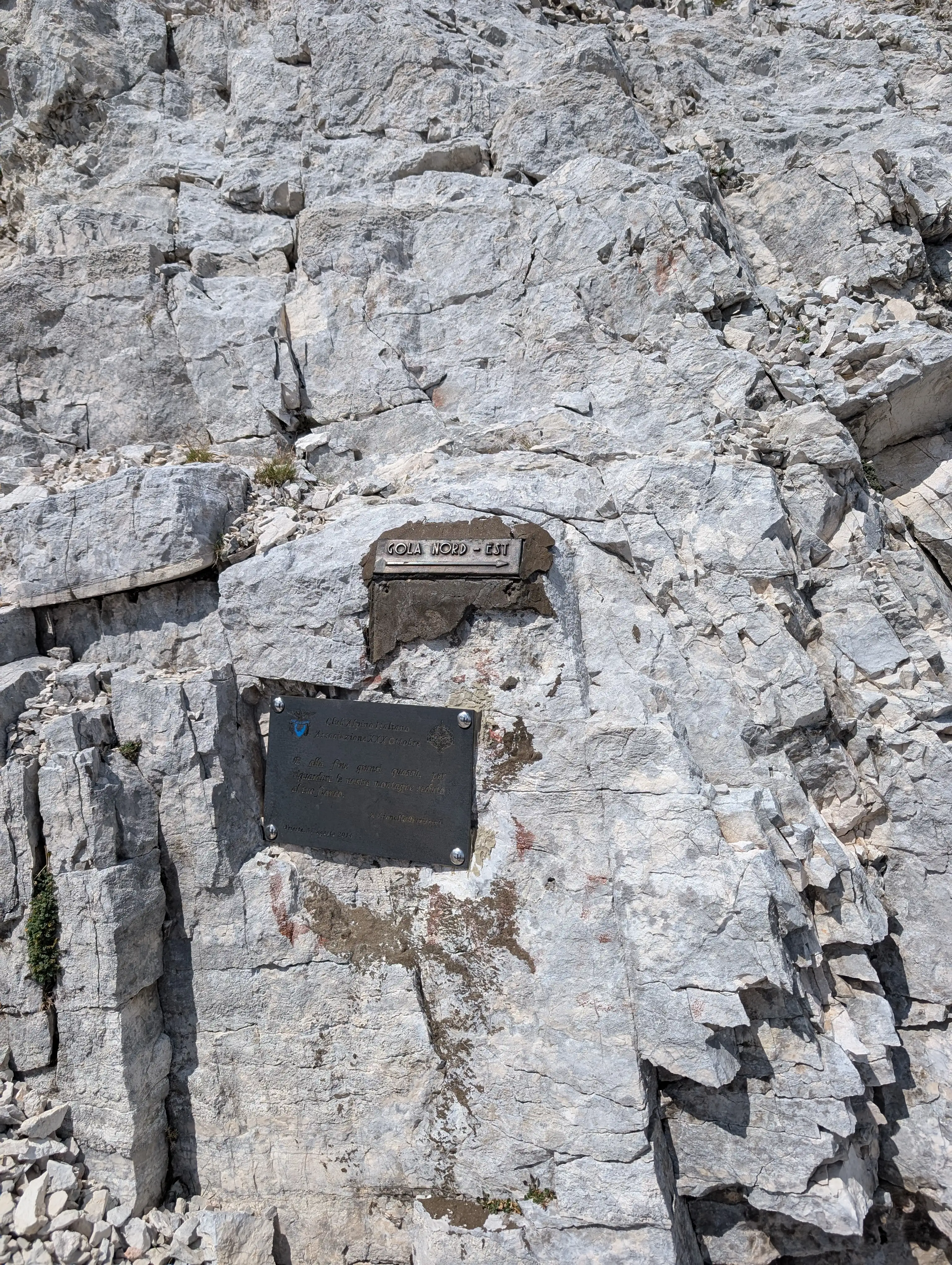 The descent runs along the marked and well-protected trail of northeast gorge (gola nord est). First streches of this route are pretty nasty, with steep slope descent in crumbly terrain. Lower, once the actual gorge is entered things get better in terms of rock quality but also more vertical and challenging. The route is protected with wires, metal steps and partly wooden ladders. All these make it an interesting down-climb, however after all these hours already they are not that easy to enjoy. Eventually we land in a grassy terrain with some paths, then cross a scree section under a giant snow field and get back to trail no. 616 and follow it in direction of Pellarini mountain hut. Then the trail is to be followed to get back to the bottom of the Saisera valley and eventually to the parking lot.