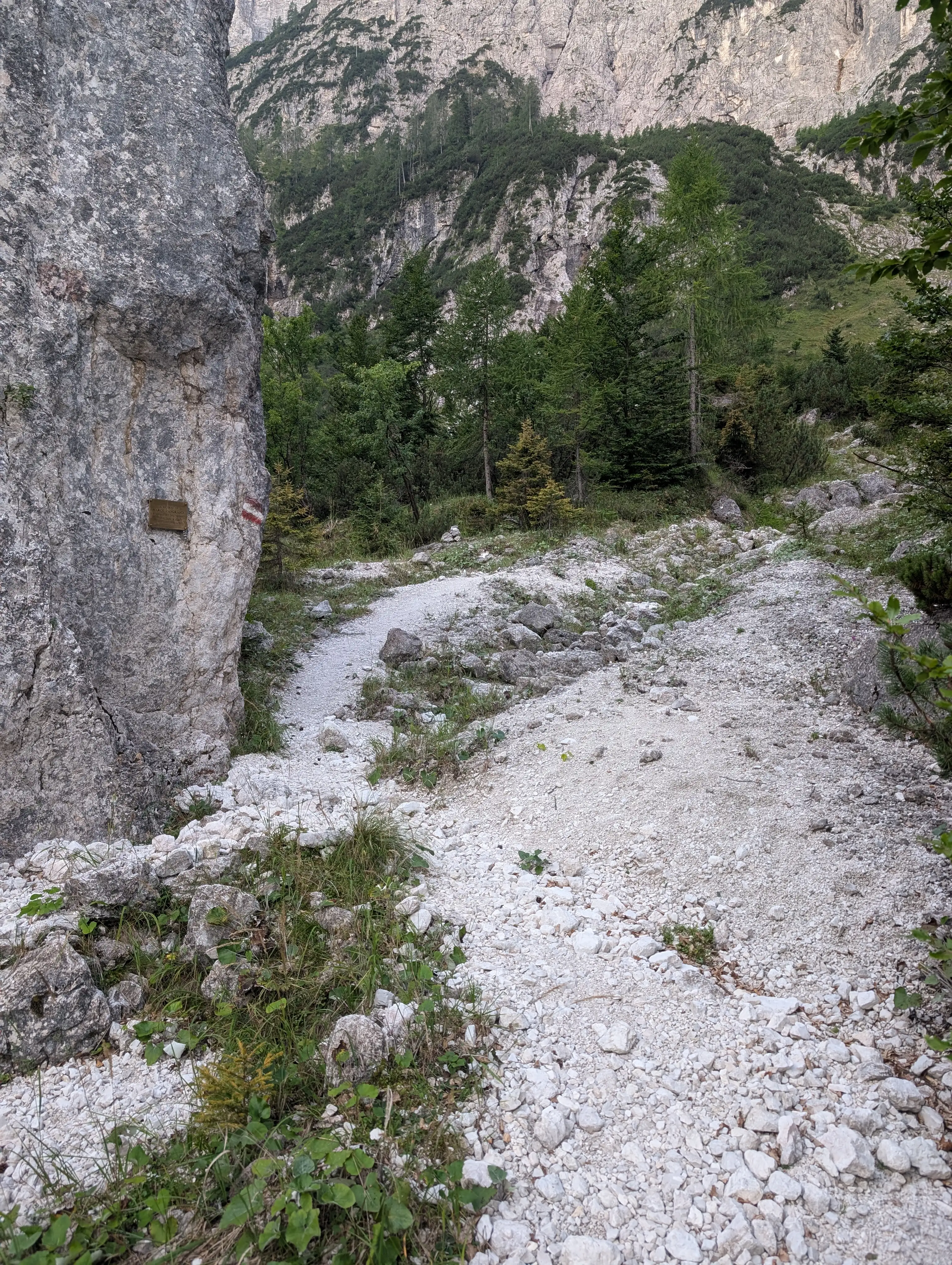 Starting point reached by car. Access to Saisera valley is protected with barrier and it costs 6 EUR. This does not apply if you show up in the early morning - before 6 AM there's no one to charge you.