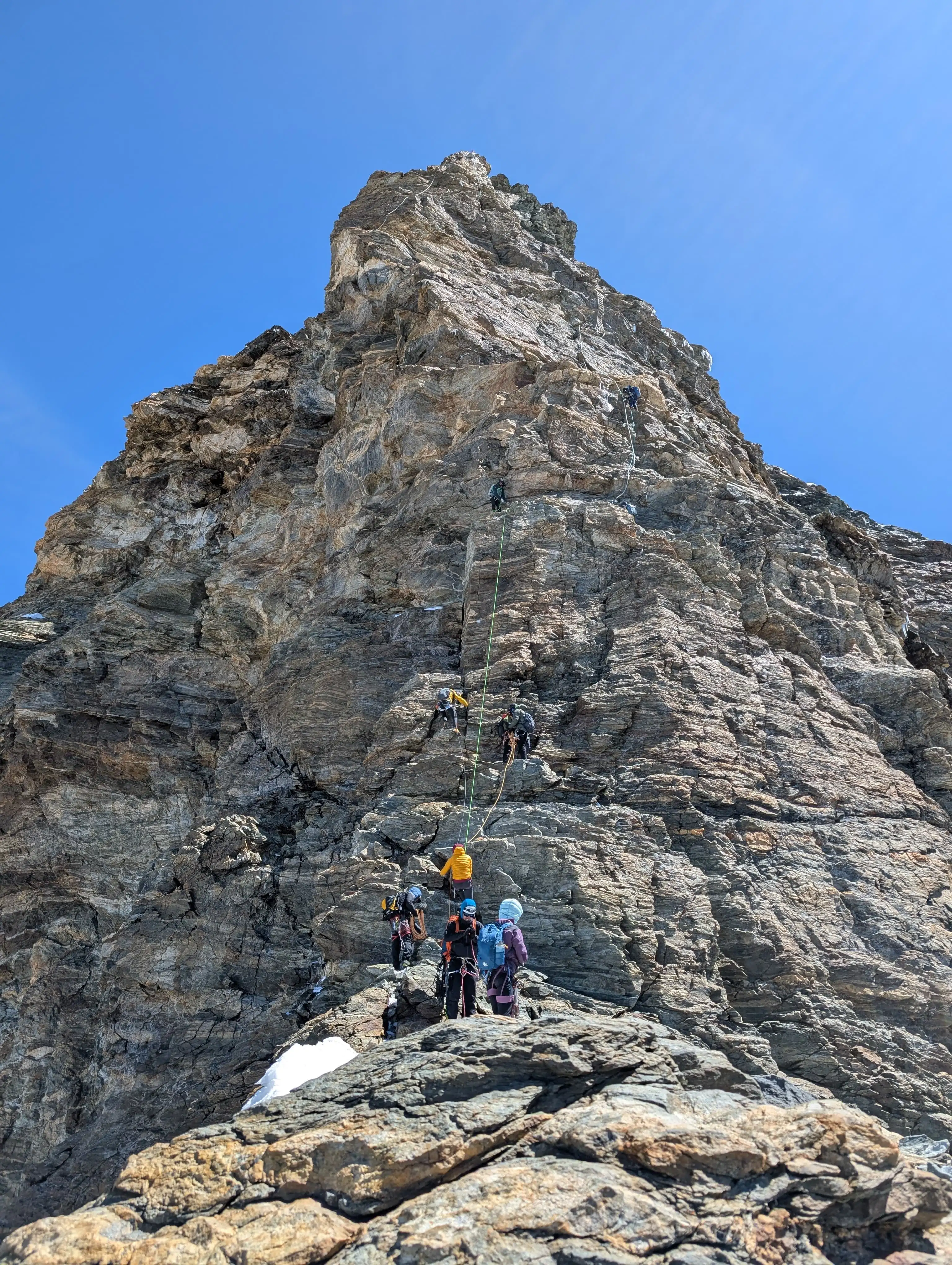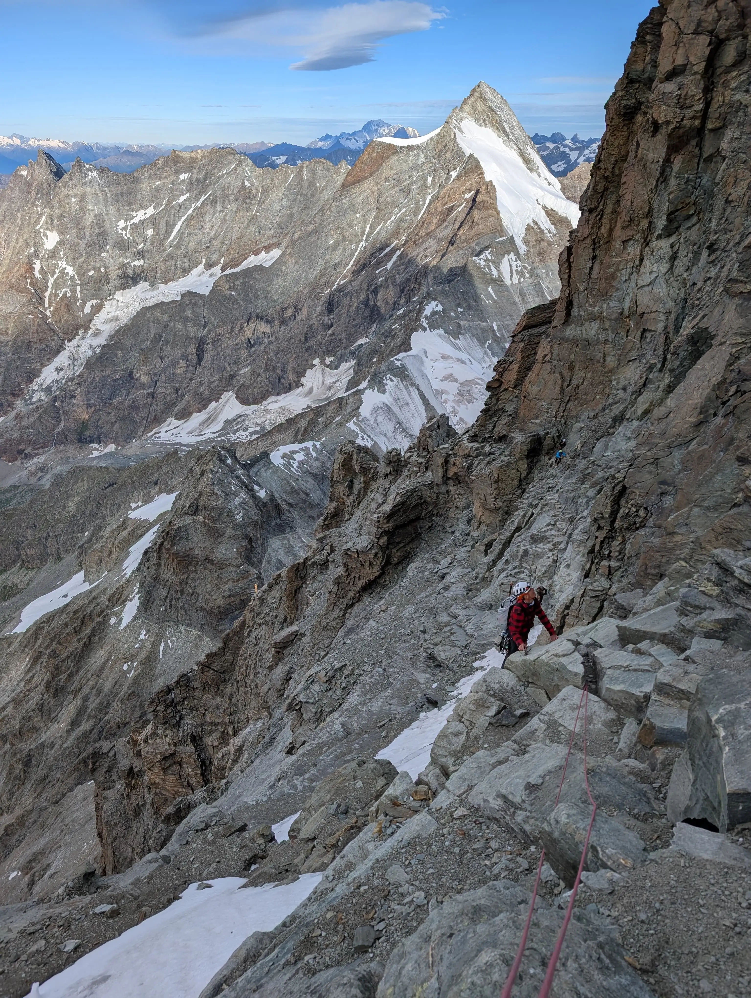 Matterhorn has claimed more than 500 human lives till today (2025) which makes the mountain stand out in comparison with other 4-thousanders in the Alps. This tragic number is however a result of the volume of the alpinists that try to conquer it and does not come from the character of the mountain itself. Lion ridge is still as a dangerous route as any other taking us to the top of the mountain of comparable height and difficulties. No need for negative mental setting beforehand. Having said that we can't forget though we are dealing with serious alpinistic challenge here.