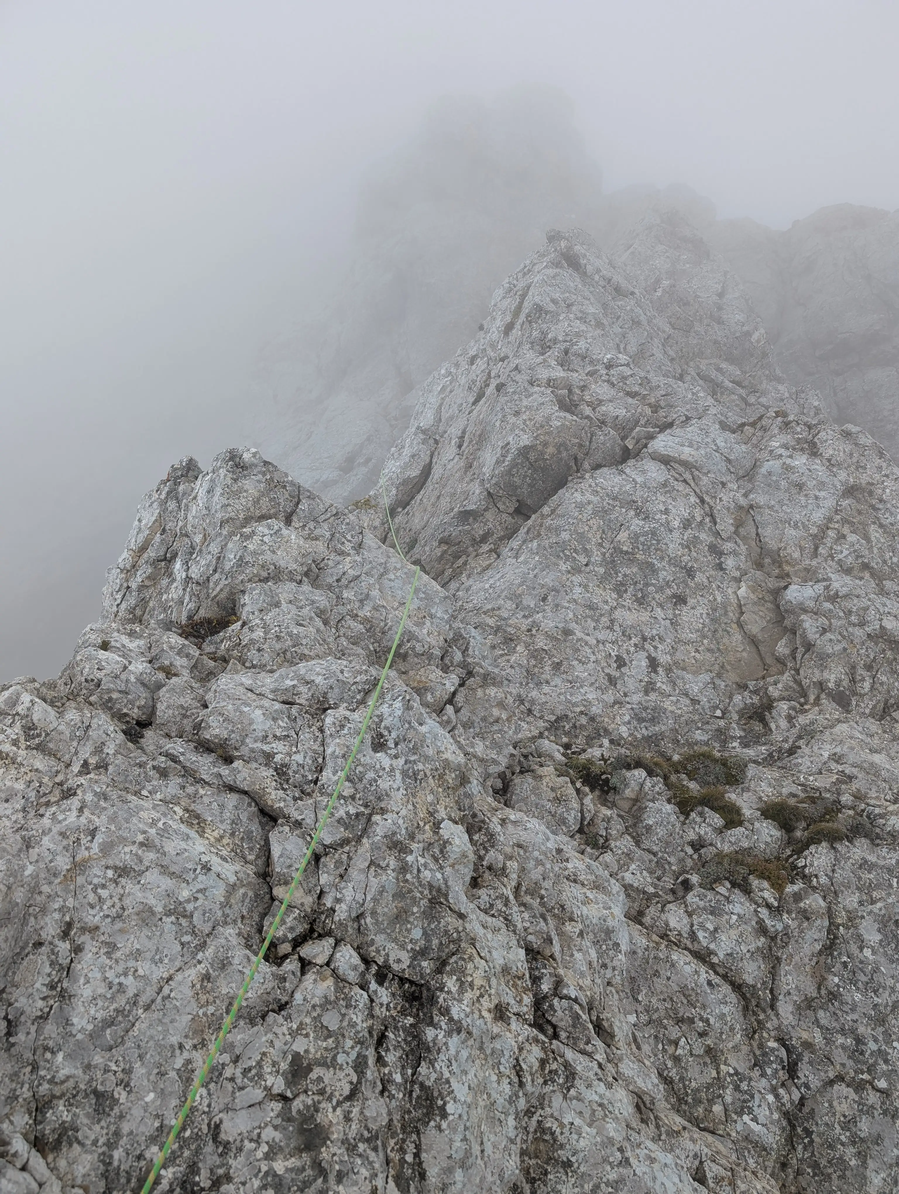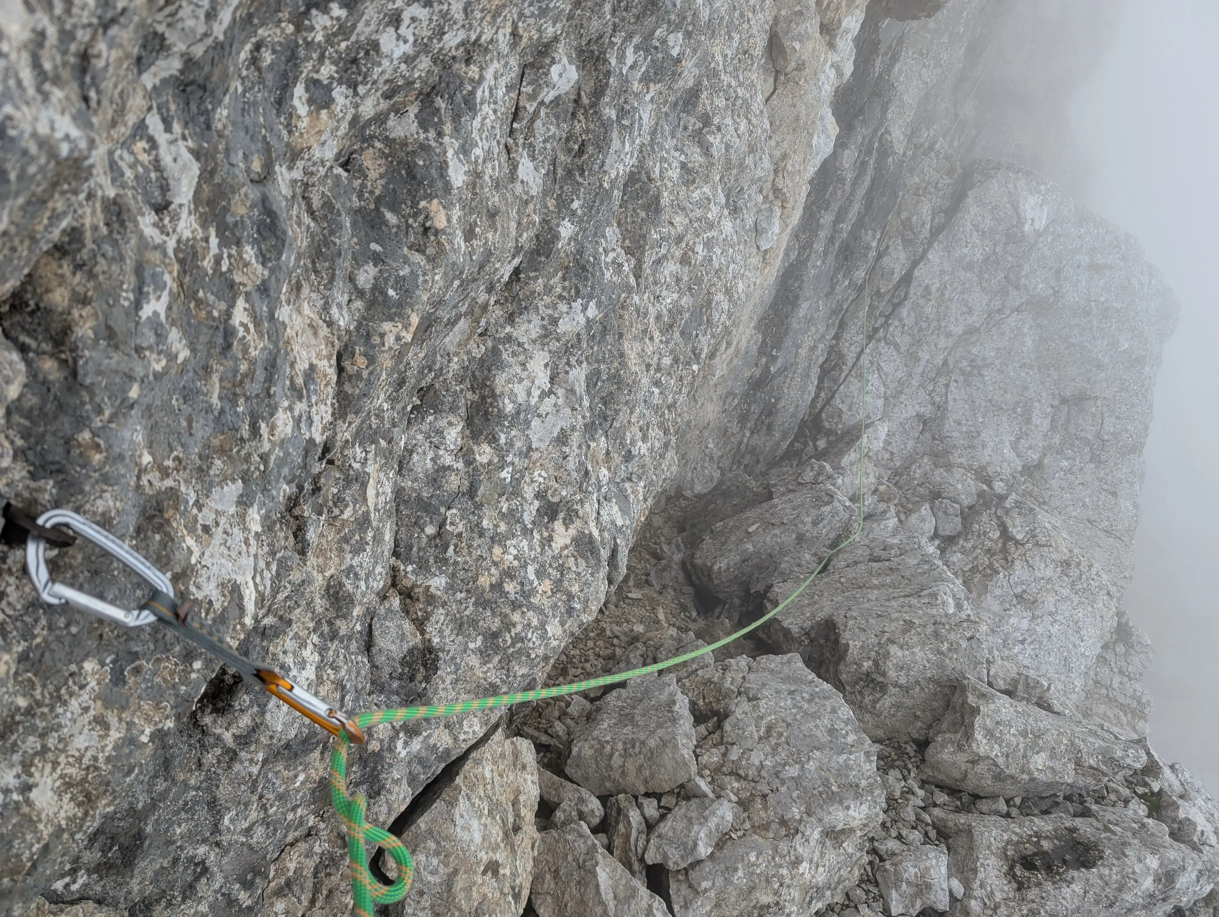 Lately there has been some rockfall (yellow rocks) that touched the ridge, however it did not affect the route.