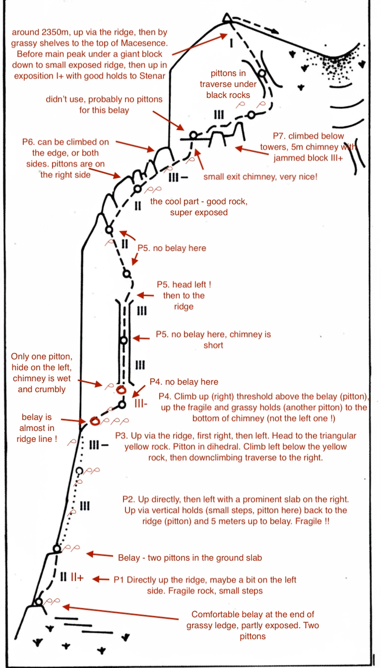 Brojanov raz is an interesting and fairly easy to navigate route that enables us to climb Stenar from northeast. It runs mostly through pillars and ridges but also in the chimneys. The ridge and pillar parts are exposed (in some places greatly) and the rock quality is questionable, especially in lower parts. Therefore, although the difficulty grade does not exceed III degree the climb cannot be underestimated.